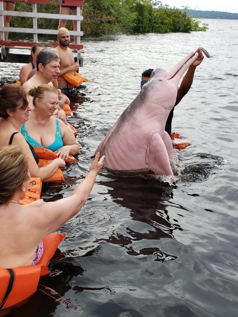 09:00 – Início da navegação pelo Rio Negro. Parada no Encontro das Águas, visita à plataforma dos botos (interação opcional), feira de artesanato, viveiro do pirarucu (simulação opcional de pesca), almoço regional, visita a uma comunidade indígena e retorno a Manaus no final da tarde.